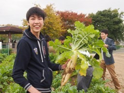 今日は、戸田川緑地の農業文化園で管理している農場で、大根収穫体験をさせていただきました。日頃自分が食べている野菜であっても、どんなふうにできているのか知らない野菜もあるし、ましてや自分で収穫するなんてことはほとんどないので、貴重な体験をすることができました。