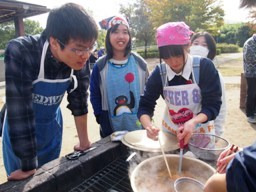 また、収穫したその場で調理して味わうことも滅多にありません。今日は、収穫したての大根で豚汁を作りました。さすが採れたての大根、火のとおりが早くて、すぐに柔らかくなりました。たくさんのおかわりもあり完食しました。