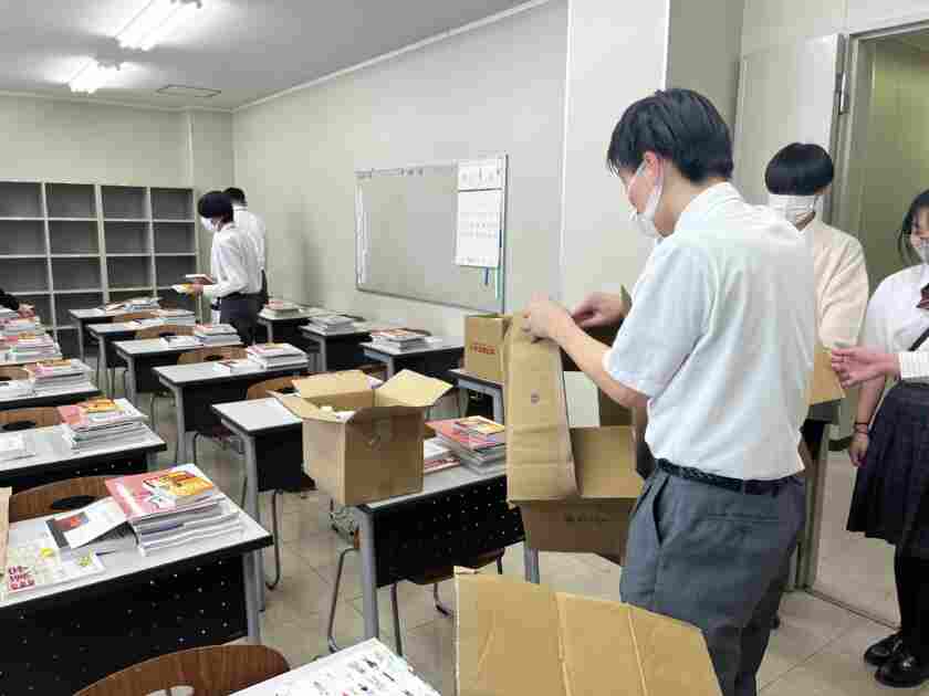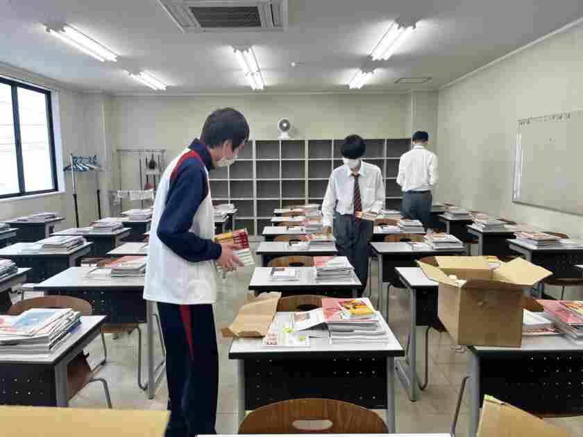 新年度に向けて、新1年生の教室のセッティングなどを在校生のお手伝いにきてくれた生徒に手伝ってもらいました!