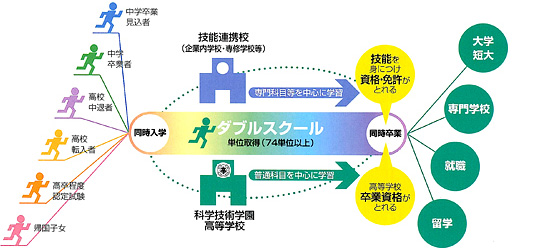 科学技術学園高等学校は、国内の企業内にある教育機関や専修学校などと「連携教育」を行う、技能連携システムを取り入れた広域通信制高等学校です。