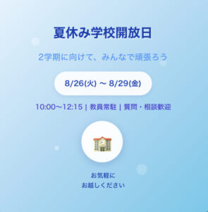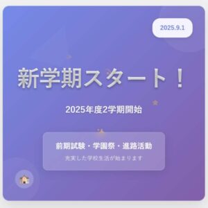 本日9月1日(月)から、いよいよ新学期(本校は2期制の学校ですが、便宜上そう呼んでいます)がスタートいたしました。 夏休み明けの生徒たちの様子 登校日から10日が経過し、先週は学校開放日で来校している生徒もいたため、本日 […]