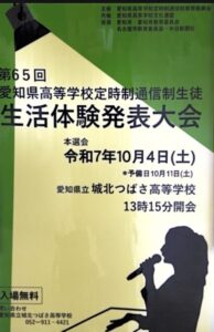 第65回愛知県高等学校定時制通信制生徒生活体験発表大会にて本校生徒が入賞