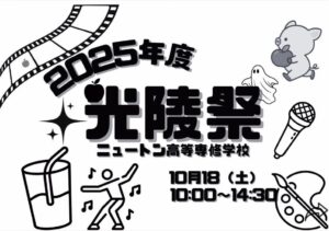 いよいよ明日10月18日(土)、令和7年度 光陵祭を開催いたします。保護者の皆様、卒業生の皆様のご来場を心よりお待ちしております。 📅 開催概要 日時: 令和7年10月18日(土) 10:30〜14:30 内容: ⚠️ […]