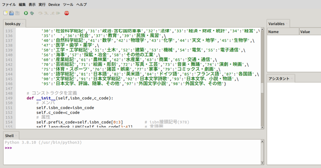 ここはひとつ、本についている2つのバーコードをピッピッと読み取って、上のISBNコードをもとに、ネットから、タイトル、著者、出版社、出版日、内容、表紙の画像を取得し、下のバーコードから、分類と価格を読み取るプログラムを作ることにしよう。といって、作ったものがこちら。