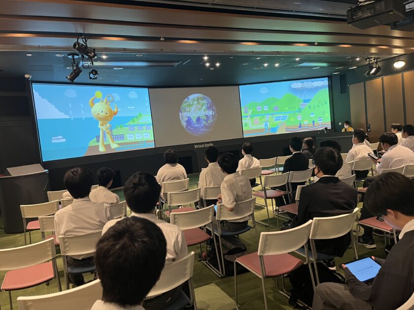 まずはバーチャルスタジオで、マスコットキャラクターのコパくんと対話しながら名古屋の水の循環のしくみを学習。私たちが日常使っている水について知識を深め、その大切さに目を向ける貴重な機会となりました。