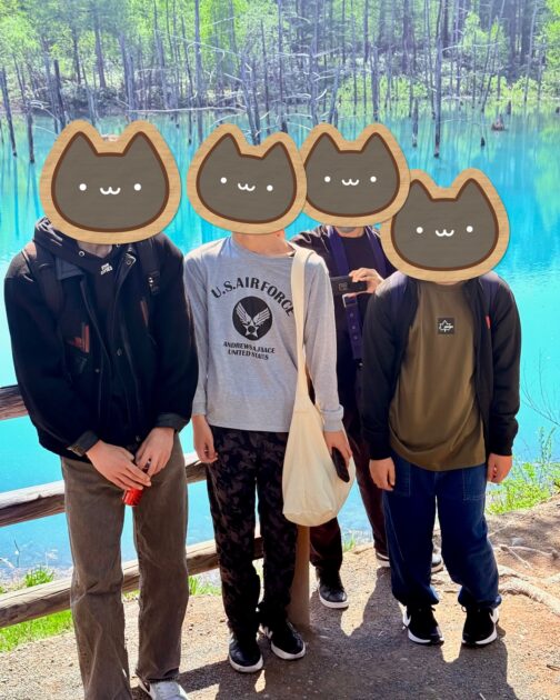 3日目は美瑛の「青い池」を訪問し、神秘的な美しさに生徒たちは見とれていました。続いて富良野でのバター作り体験では、グループで協力し合いながら一生懸命に取り組む様子が微笑ましく、完成した時の達成感あふれる笑顔が印象に残っています。昼食では富良野の地元食材を活かしたハンバーグを味わい、午後には登別温泉へ移動しました。地獄谷では自然の力強さを肌で感じる貴重な体験となり、ホテルでの夕食では蟹や刺身、ステーキなどの豪華なブュッフェで北海道の食の豊かさを実感しながら、修学旅行の思い出を語り合いました。