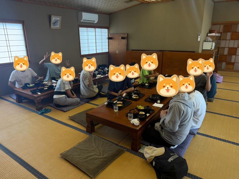 朝食では、なぜか食欲が爆発している生徒が続出しました。ご飯を茶碗3杯食べる生徒も多数現れ、炊飯器が空になり、おかわり用の炊飯器も完売状態に。「海の空気で食欲が増したのかな」と笑いながら見守りました。