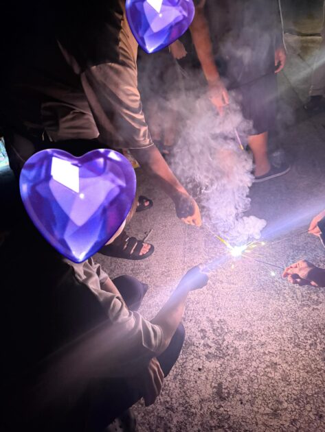 夜は花火大会です。手持ち花火から打ち上げ花火まで、安全に配慮しながら楽しい時間を過ごすことができました。写真を撮り合う生徒たちの笑顔がとても素敵でした。