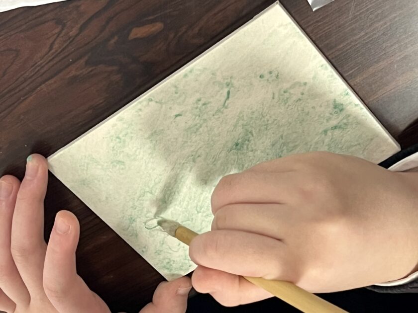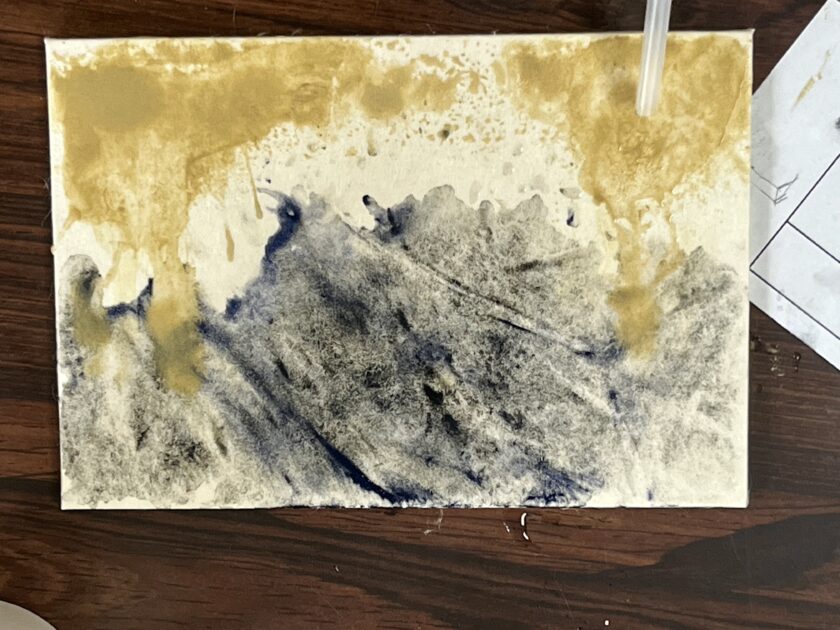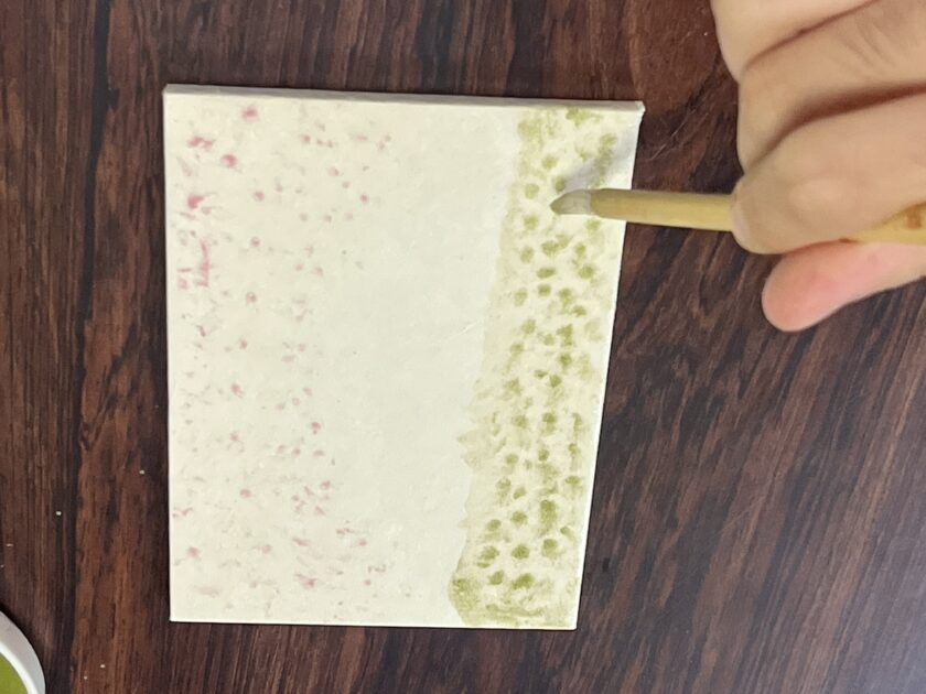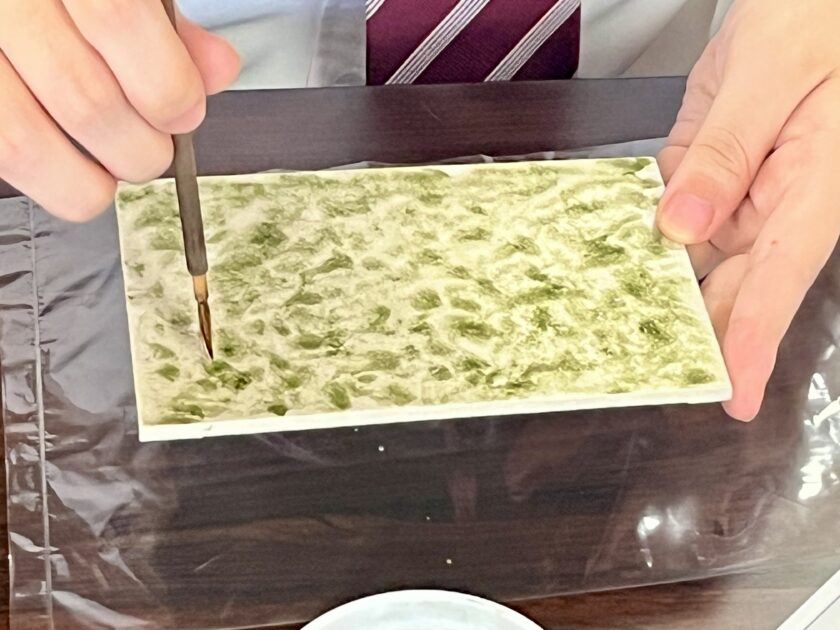 今回のプログラムでは、和紙・岩絵具を使用したワークショップ型授業を行っていただきました。生徒たちにとって初めて触れる岩絵具と和紙の画材に、最初は戸惑いながらも、徐々にその特性を理解し、思い思いの絵を描いていく様子が見られました。