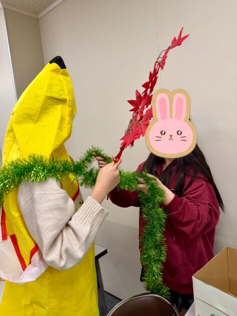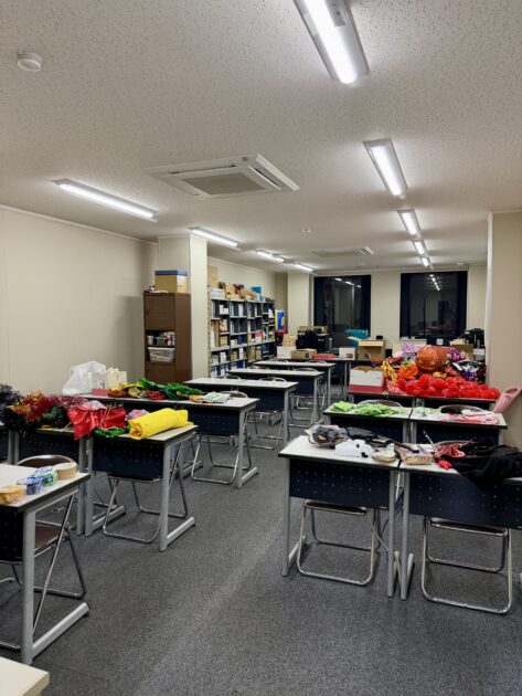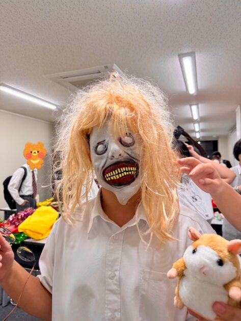 今日は在校生が学園祭の準備のため、これまでの備品をクラスごとに分配しました。仮面やウィッグ、着ぐるみなどがあり、生徒たちは楽しそうに選んでいました。各クラスともアイデアを出し合いながら、着々と準備を進めています。繰り返しにはなりますが、3年生は飲み物や軽食の販売を予定しております。よろしければ少額の現金をお持ちいただけますと幸いです。