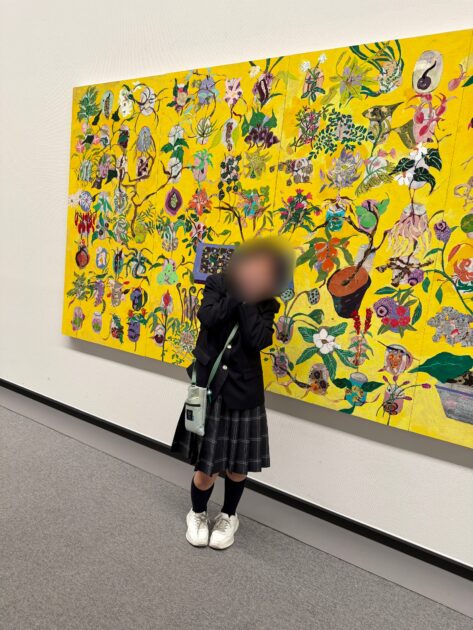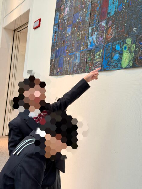 クラスを2グループに分け、ガイドボランティアの方々に案内していただきました。今回は「対話型鑑賞」という形式で、ボランティアの方々と対話を重ねながら作品と向き合うことができました。自分では気づかなかった視点や、作品に込められた思いなど、対話を通じて作品の魅力により深く迫ることができたのではないでしょうか。